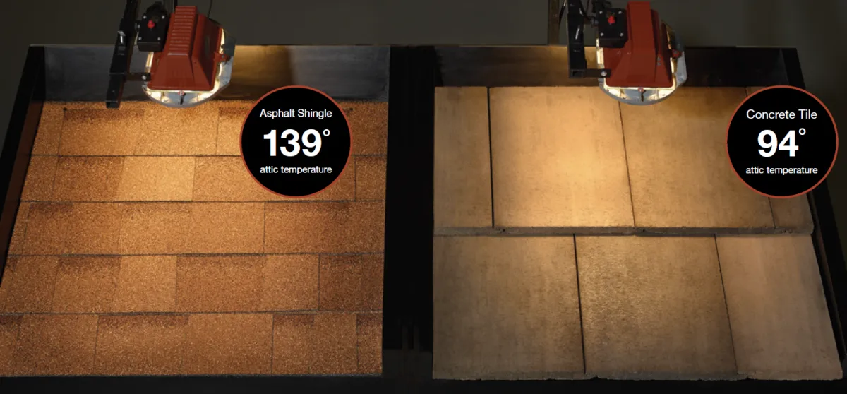 Concrete tiles deliver superb durability, fire resistance, and energy regulation—often lasting 50+ years—while resisting wind, rot, and pests.